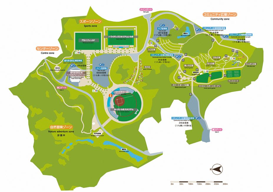 | 駐車場 | メイン駐車場 650台 サブ駐車場 397台 屋内多目的広場駐車場 105台 コミュニティ広場東駐車場 51台 コミュニティ広場西駐車場 245台 コミュニティ広場南駐車場 20台 コミュニティ広場北駐車場 44台 |